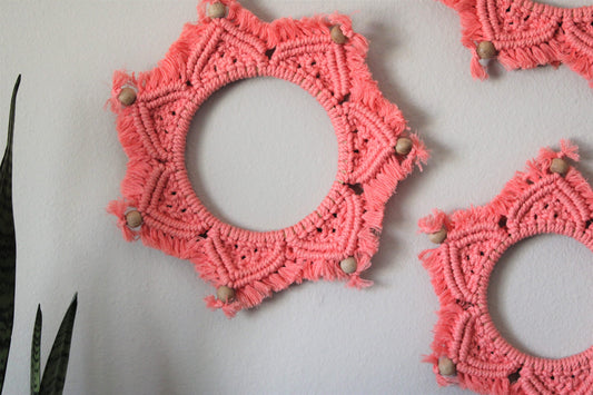 Set of 3 Handmade Macrame Mandala Art in coral pink