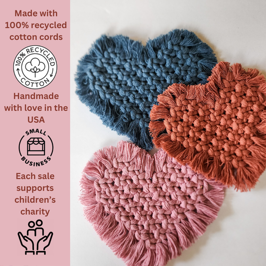 Cotton Heart Coasters | Valentines Day Boho Decor WHOLESALE