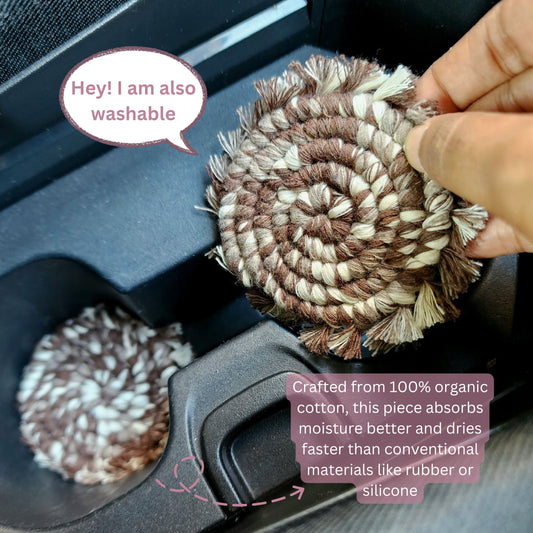 Cotton Car Coasters 2pc | Washable Handmade Macrame Car Accessories for Women