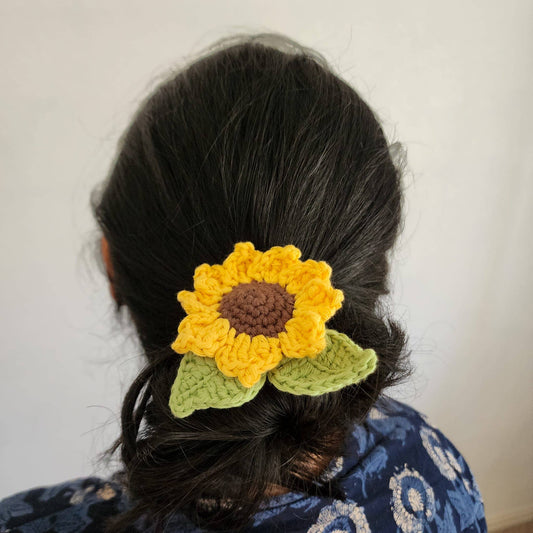 Colorful Sunflower Hair Clip | Handwoven Crocheted Clip