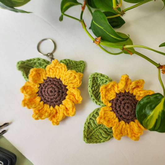 Colorful Sunflower Keychains | Handwoven Crocheted keyring