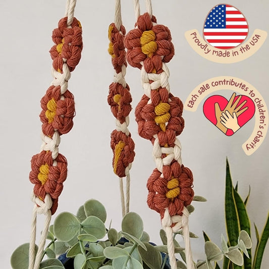 Macrame plant hanger with Daisies | Hanging plant holder | Macrame Plant hangers outdoor and indoor hanging planters Plant stand indoor Boho Decor hanging planter stand/plant shelf (Cafe Latte)