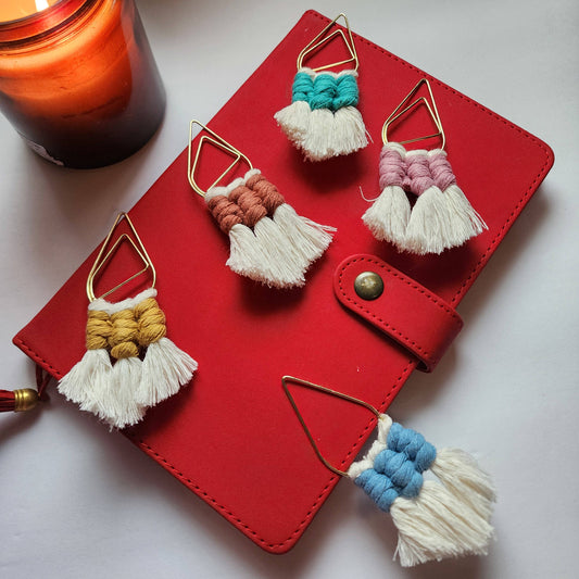 Handmade Braided Yarn Bookmark | Colorful Geometric Metal
