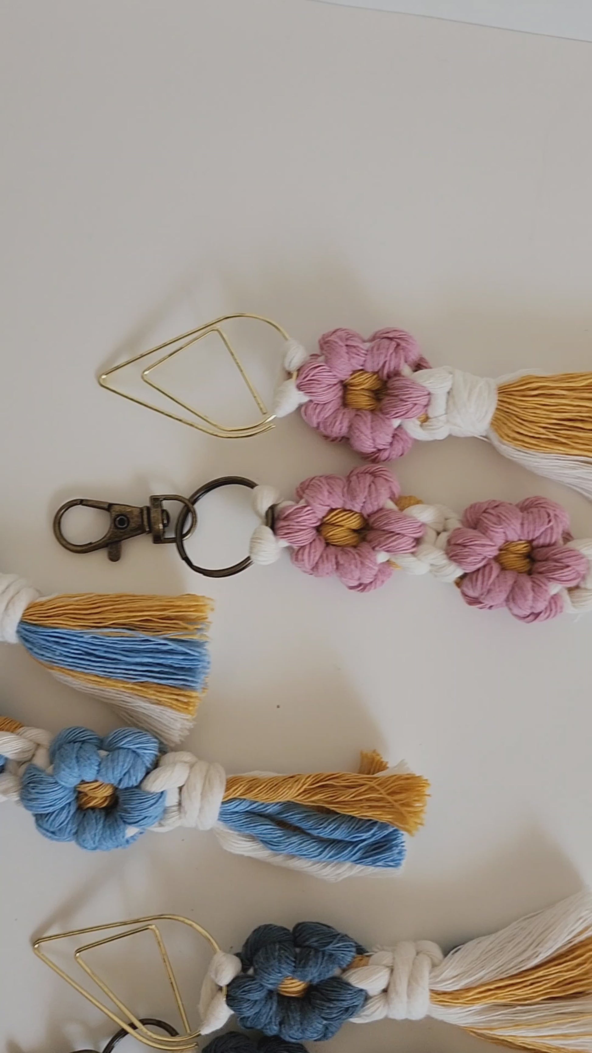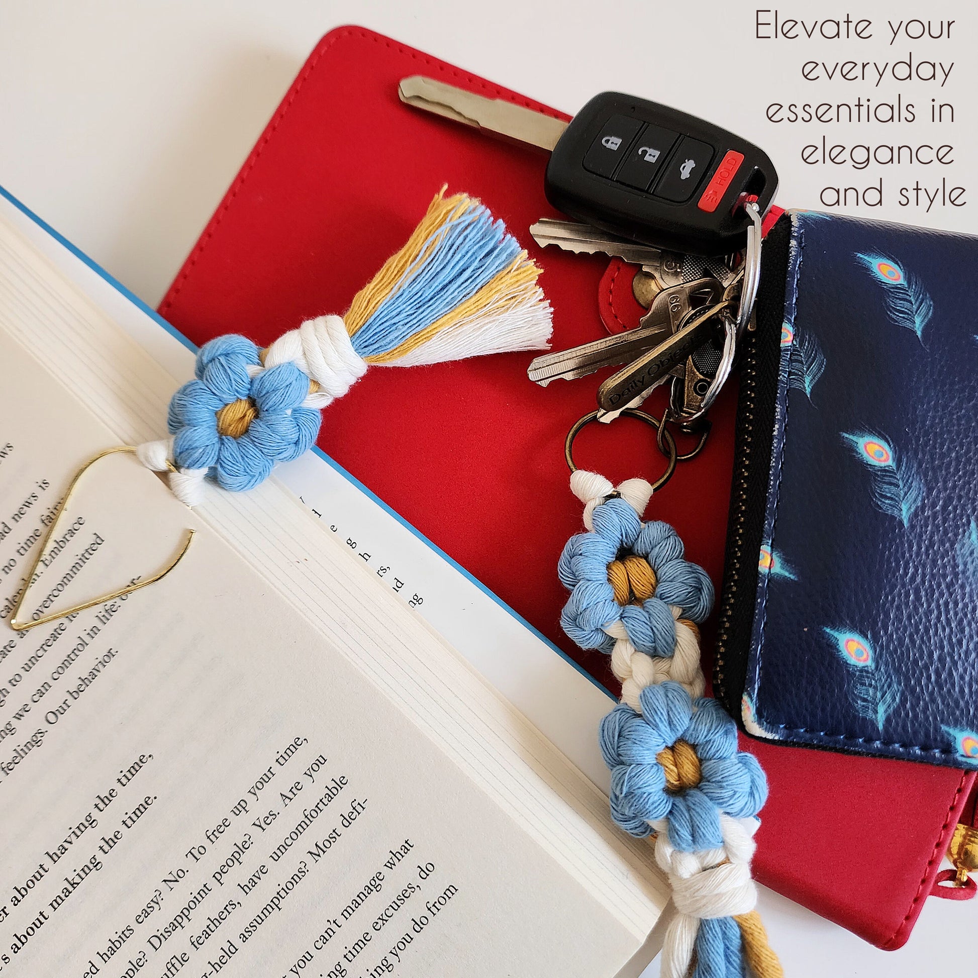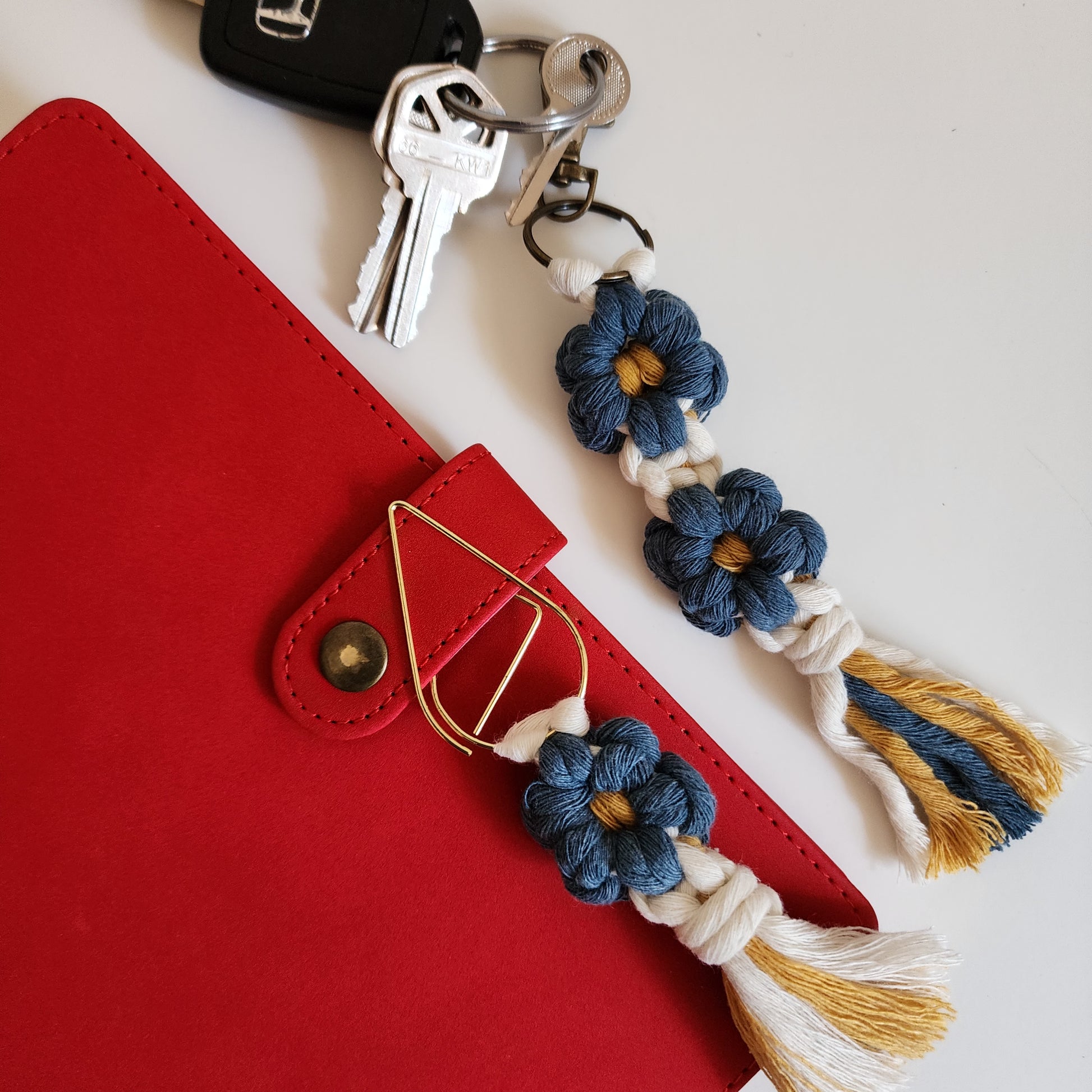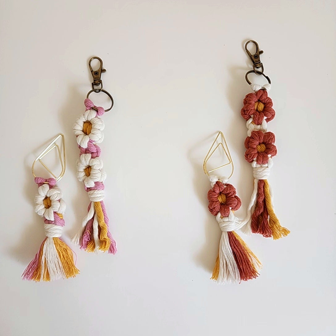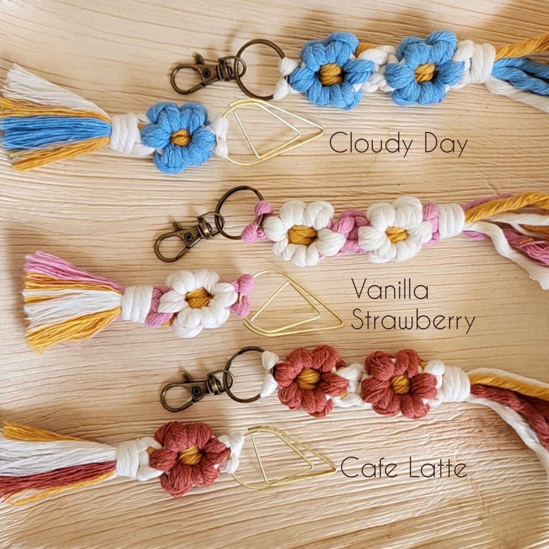 - Nature's Palette: Delight in our Macrame Daisy Keychain and Bookmark Set, blending vibrant colors and daisy-inspired beauty.