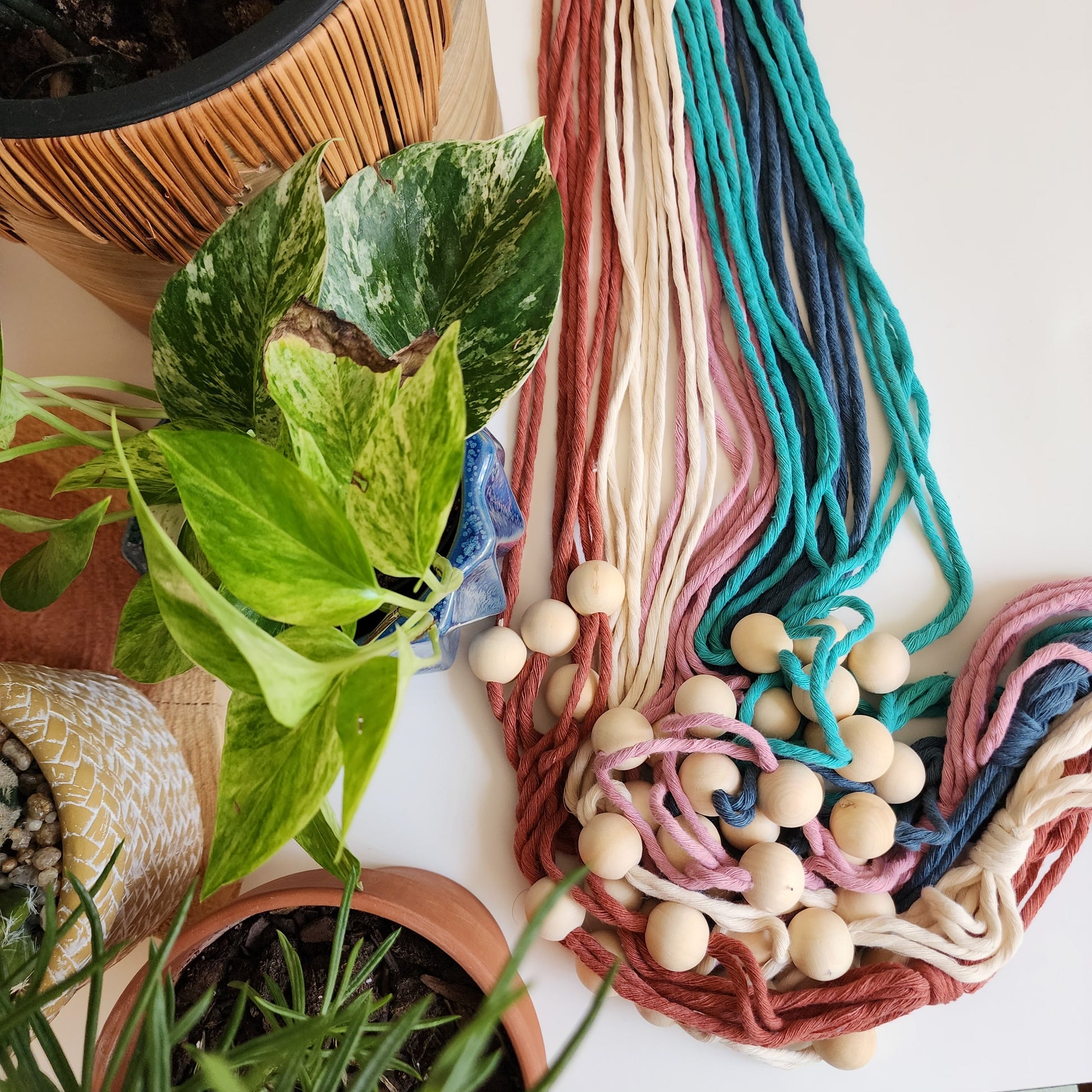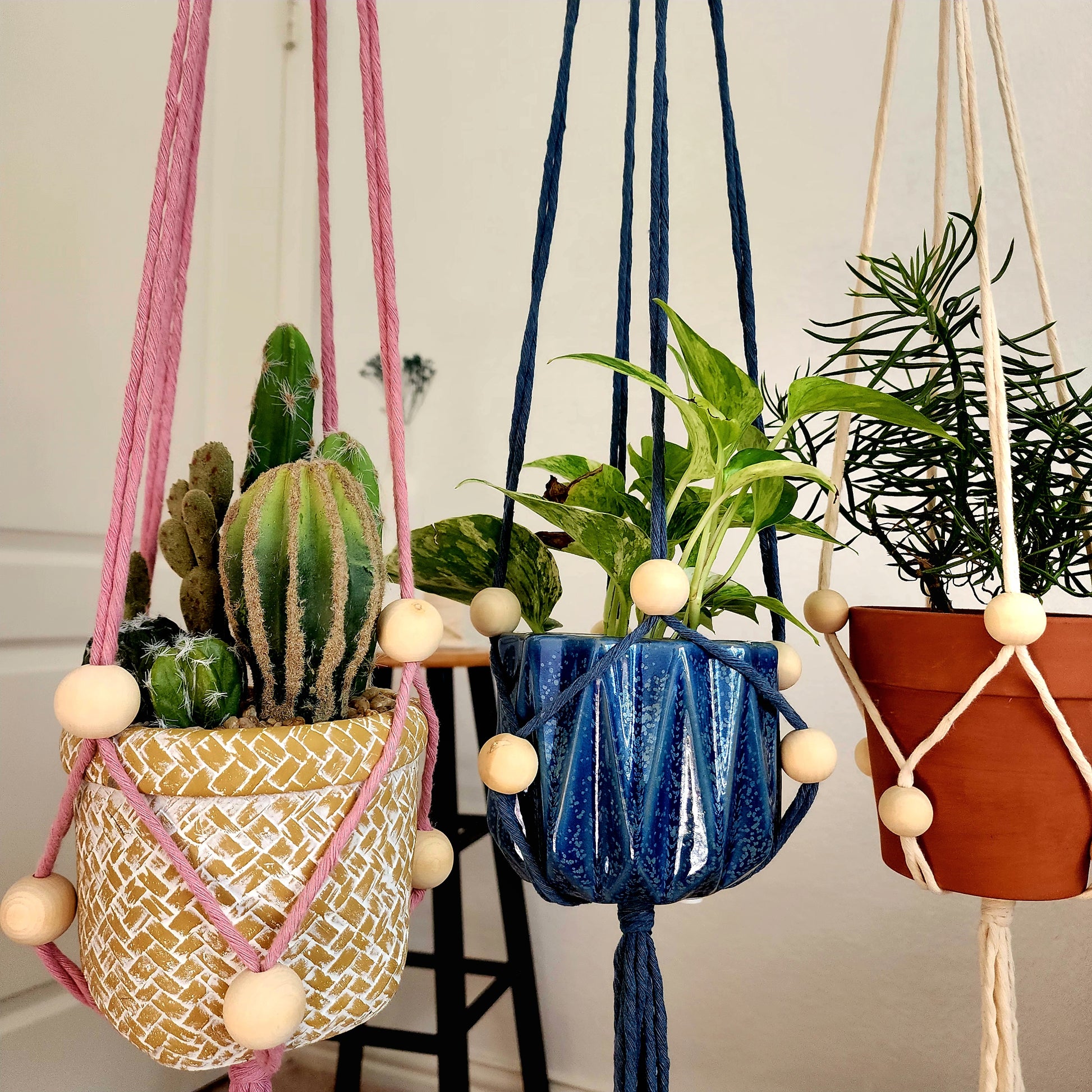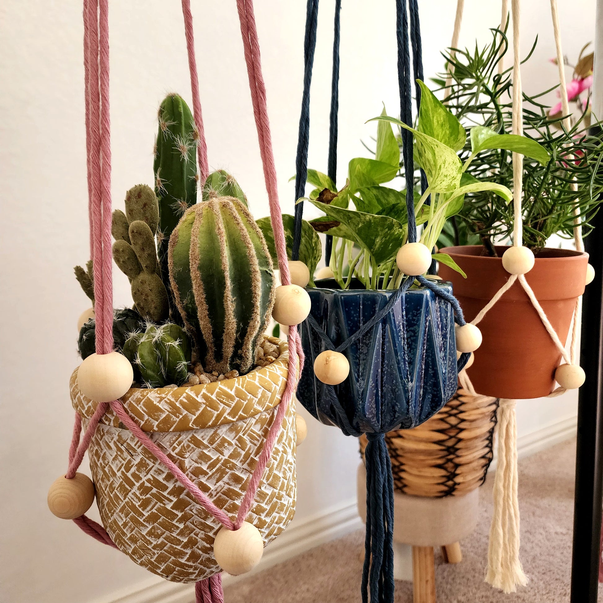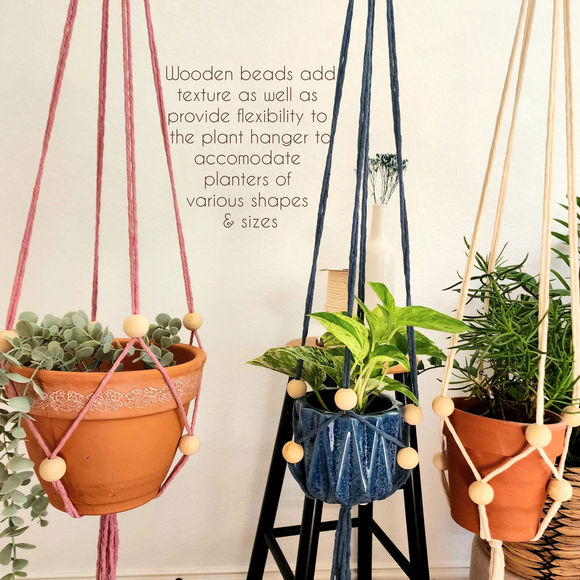 Add boho elegance to your space with this adjustable hanger, perfect for showcasing various plant sizes.