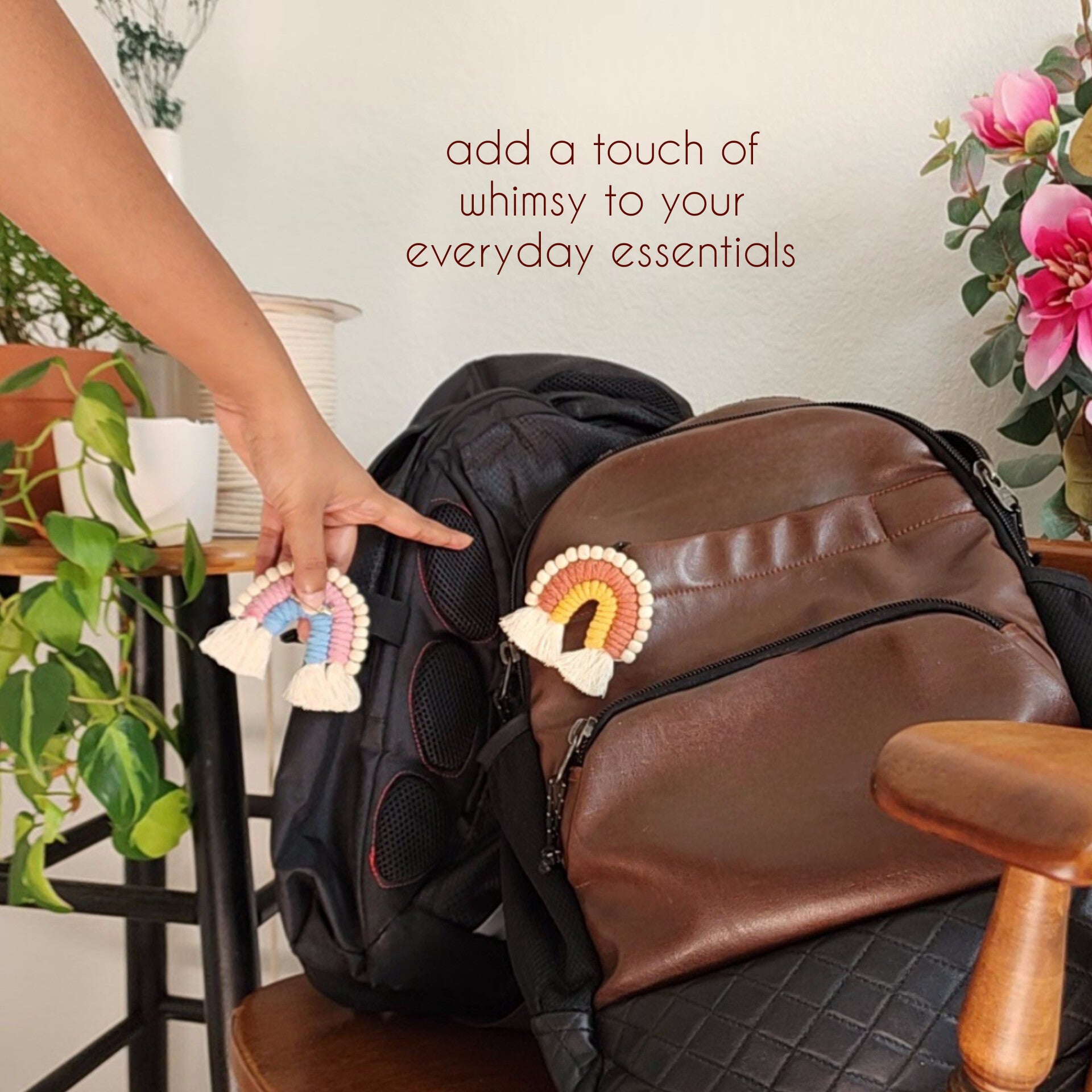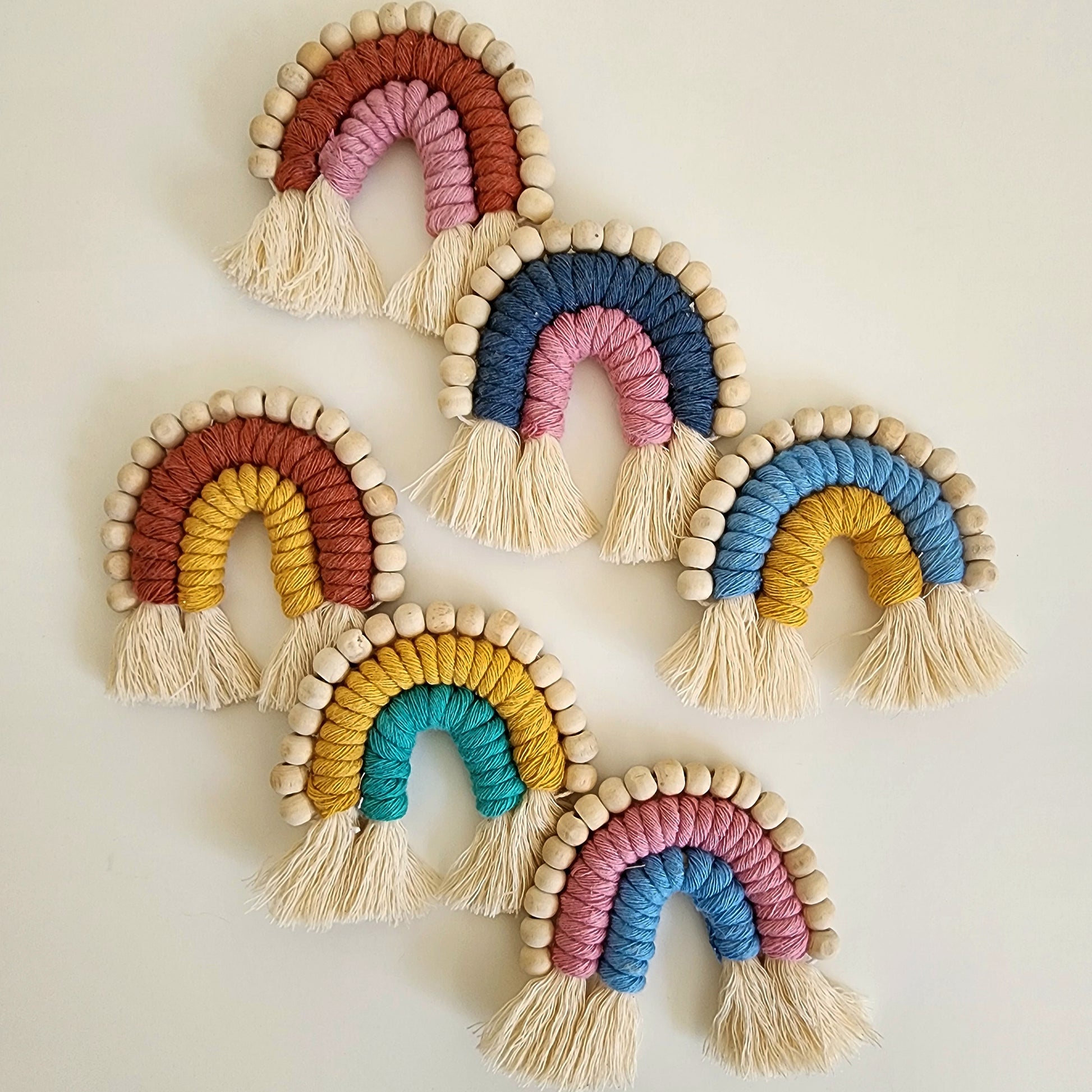 - Rainbow of Delight: Add whimsy and elegance to your style with our Colorful Macrame Rainbow Brooch Pins.