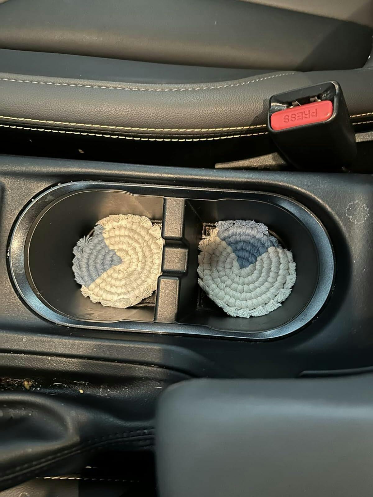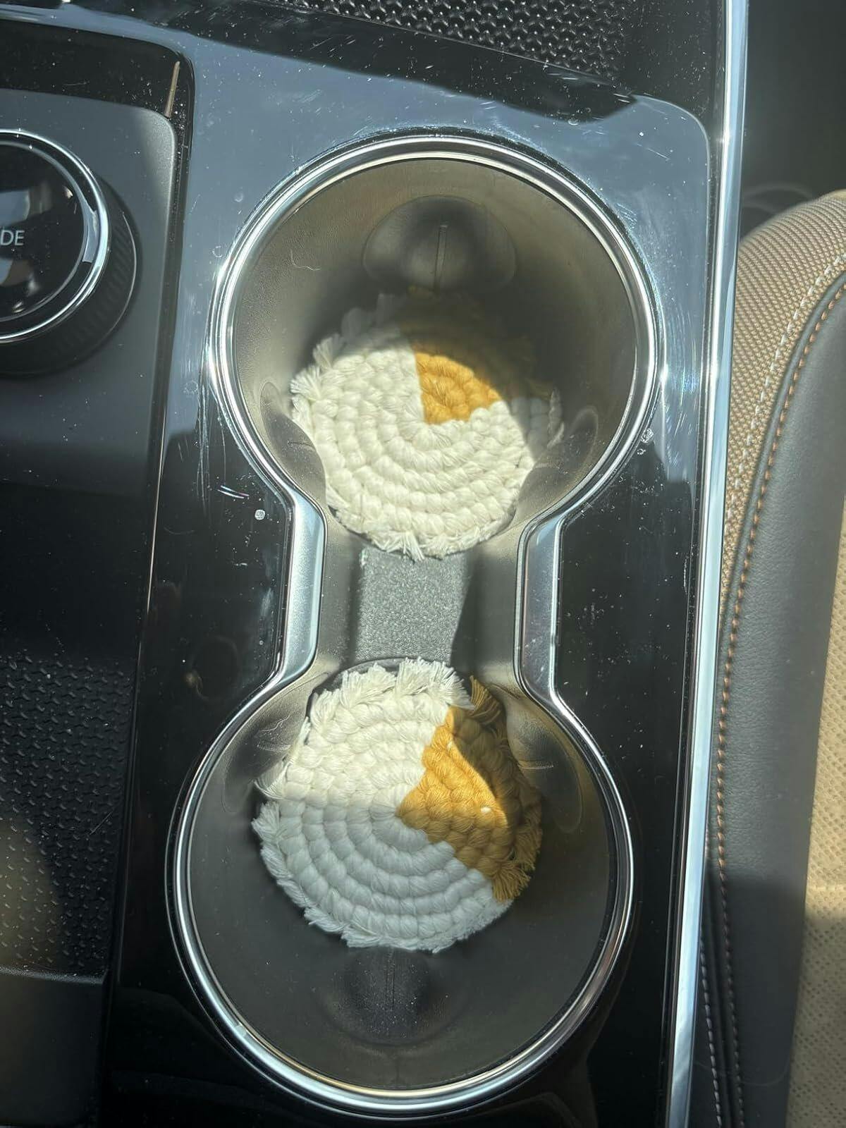 Cotton Car Coasters 2pc | Washable Handmade Macrame Car Accessories for Women