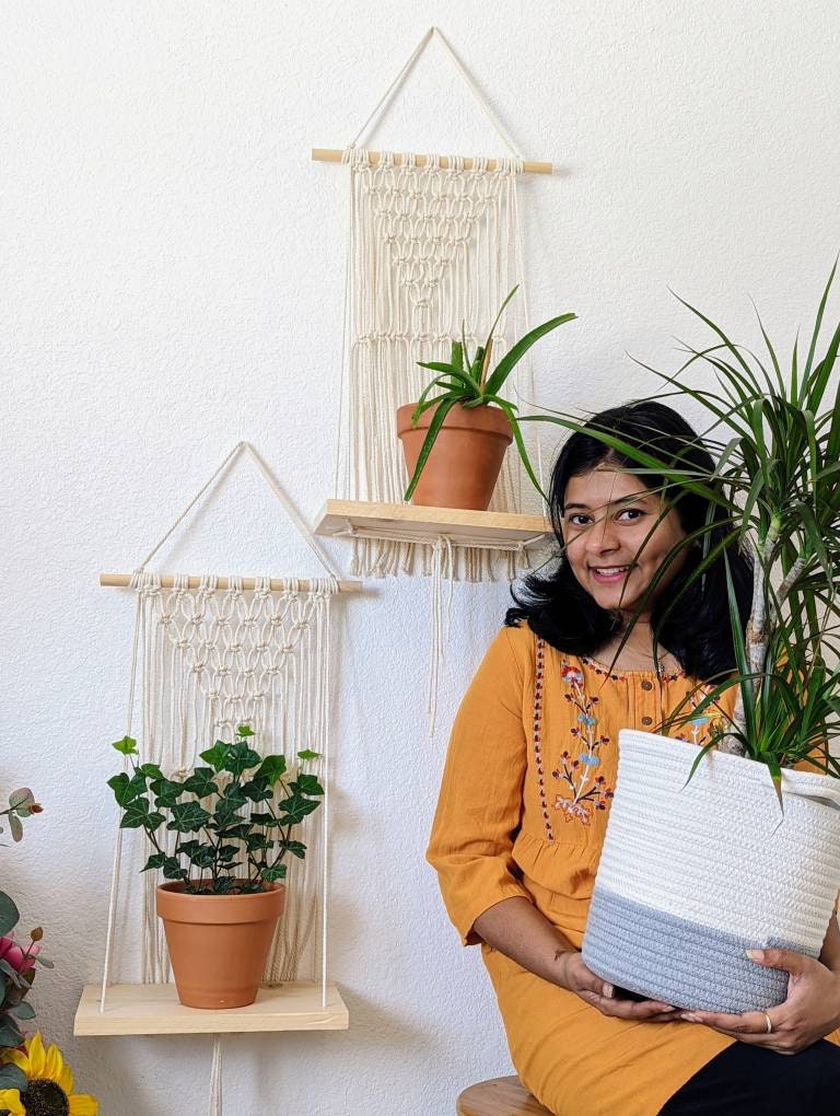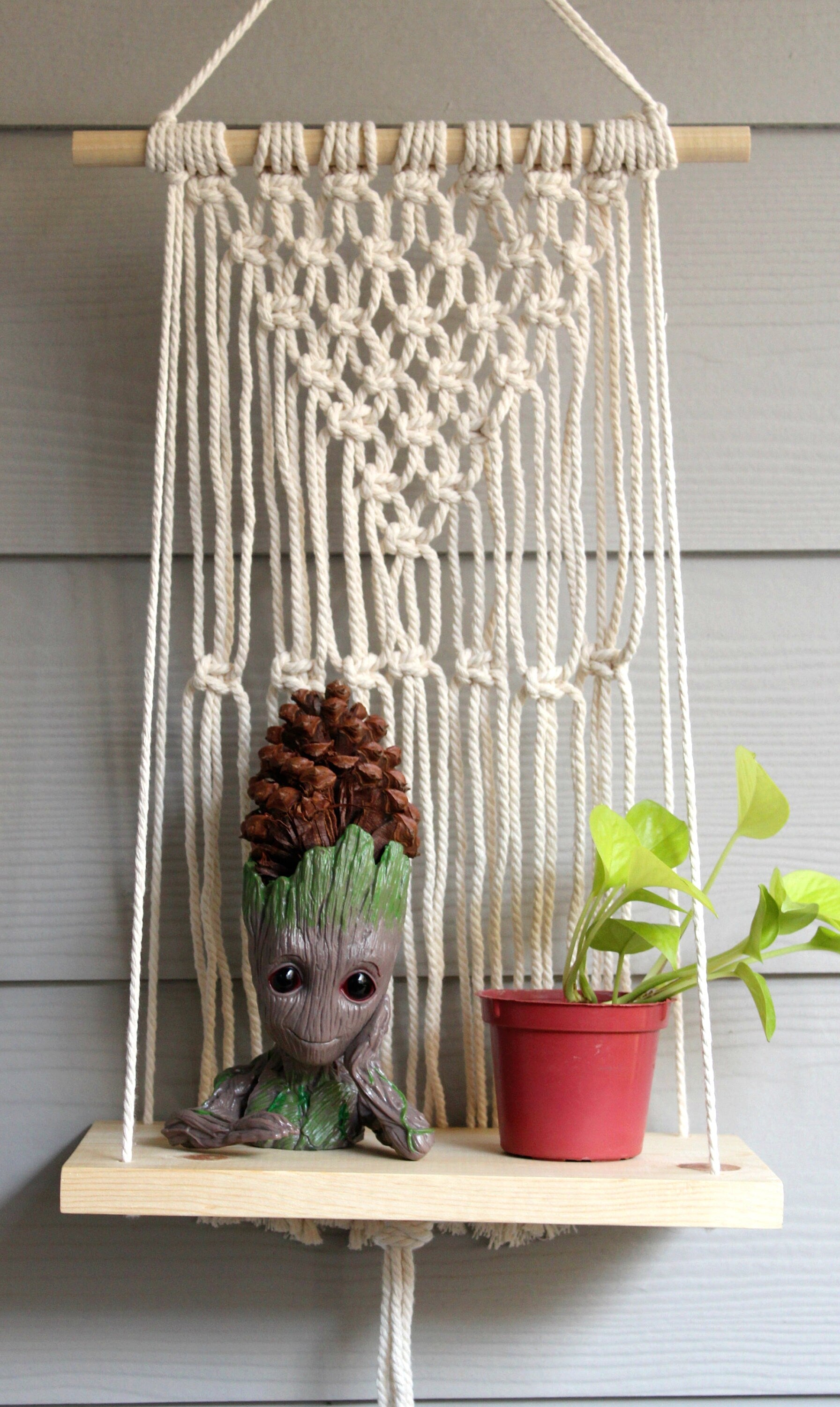 Handmade Boho Macrame wooden Shelf for Plants, Decorative Floating shelf WHOLESALE