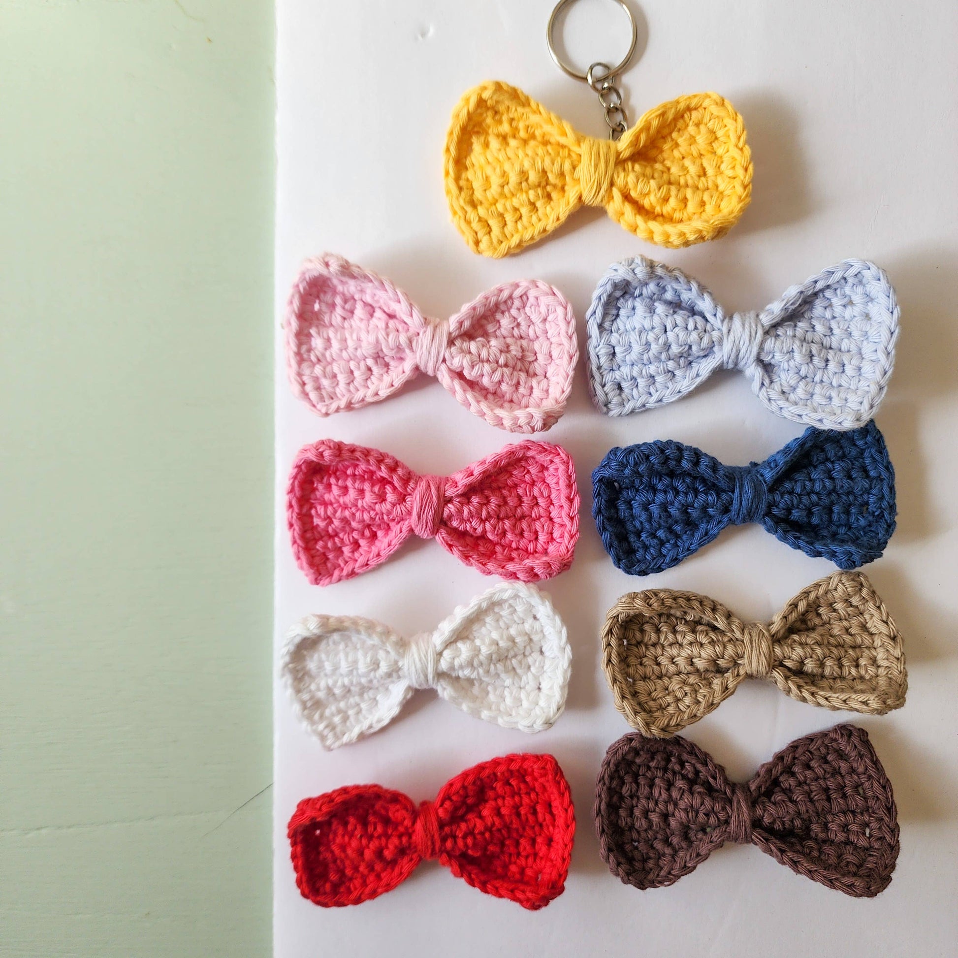 Handmade bow keychain, crocheted purse charm, aesthetic bow keyring, boho bag accessory, boutique keychains