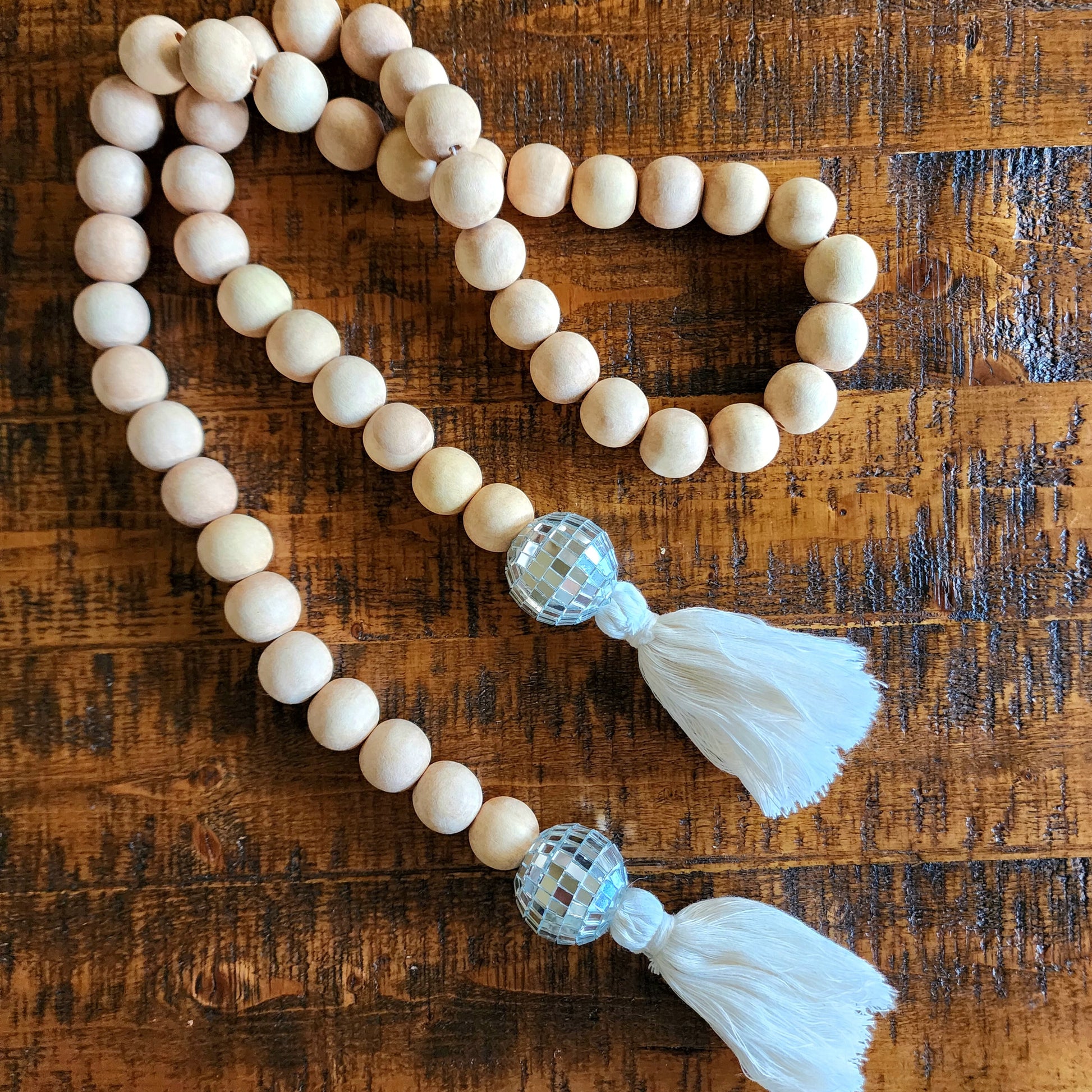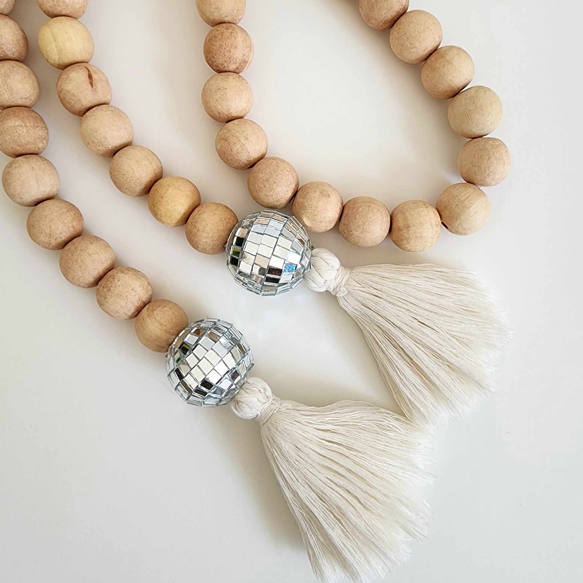 🌟 Unique Décor Fusion: Elevate your space with our Wooden Beads Garland featuring charming disco balls for a blend of natural elegance and playful flair.