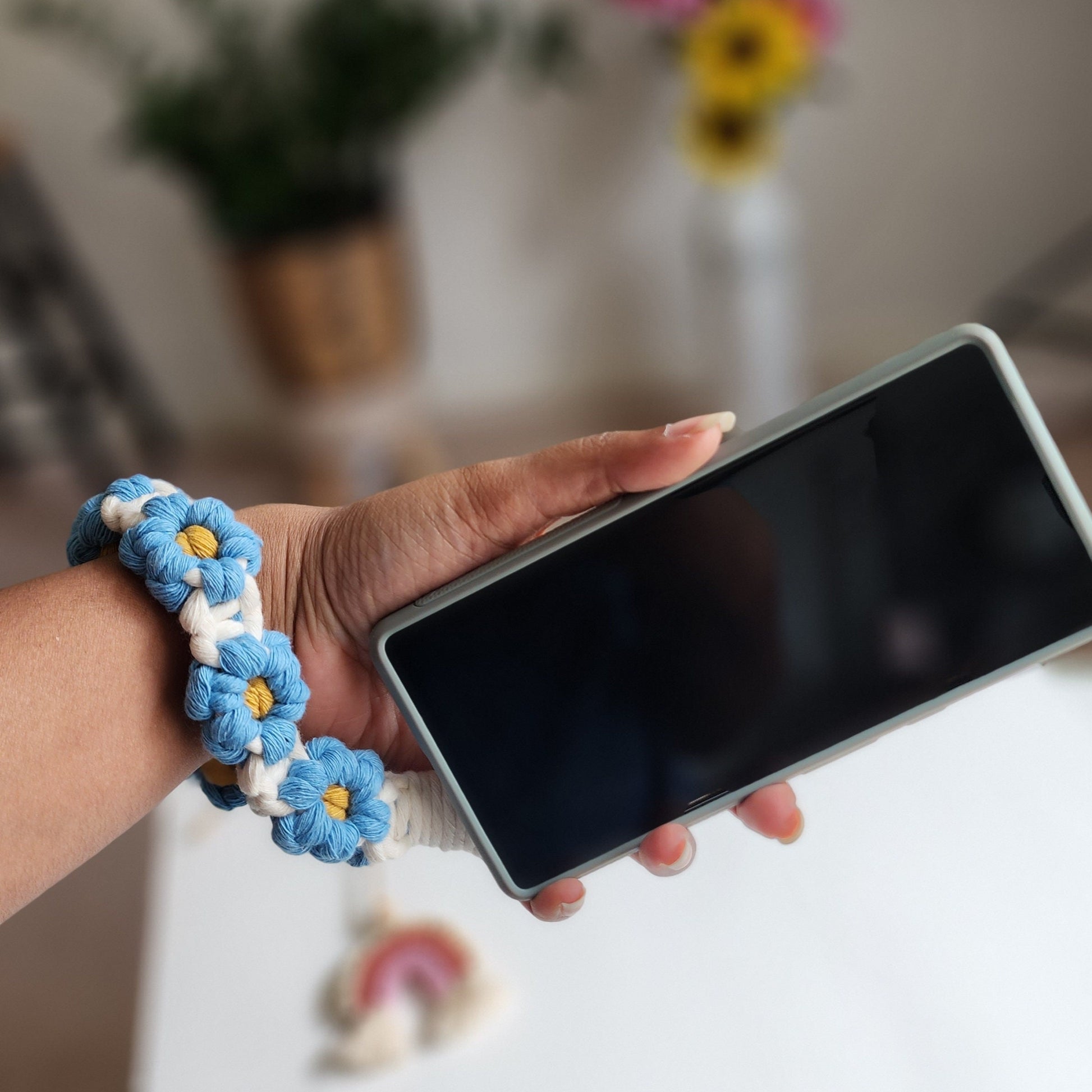 Embrace whimsical charm with our Handmade Cotton Macrame Daisy Flower Phone Holder Wristlet, a delightful accessory designed to add a touch of nature-inspired elegance to your phone carrying experience.