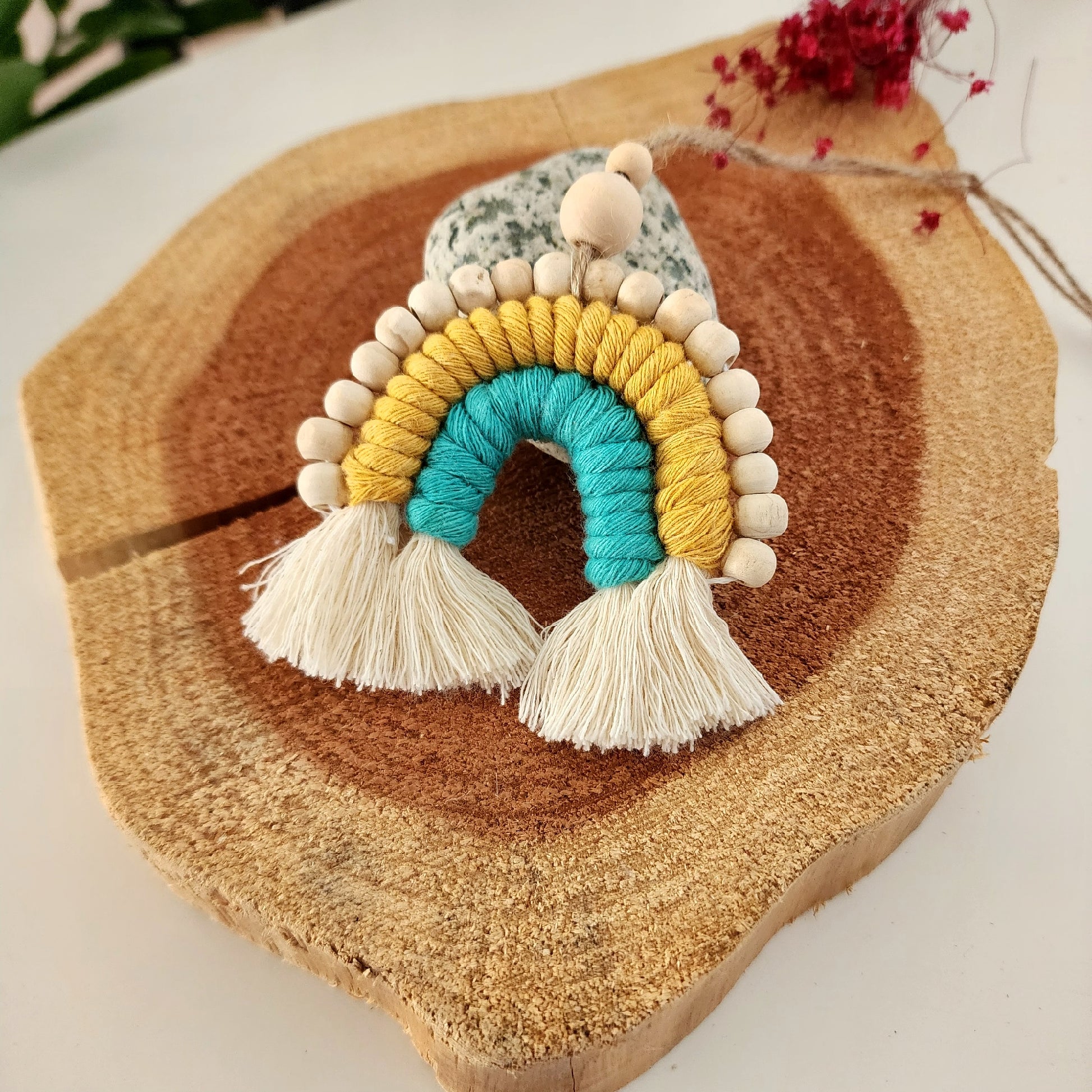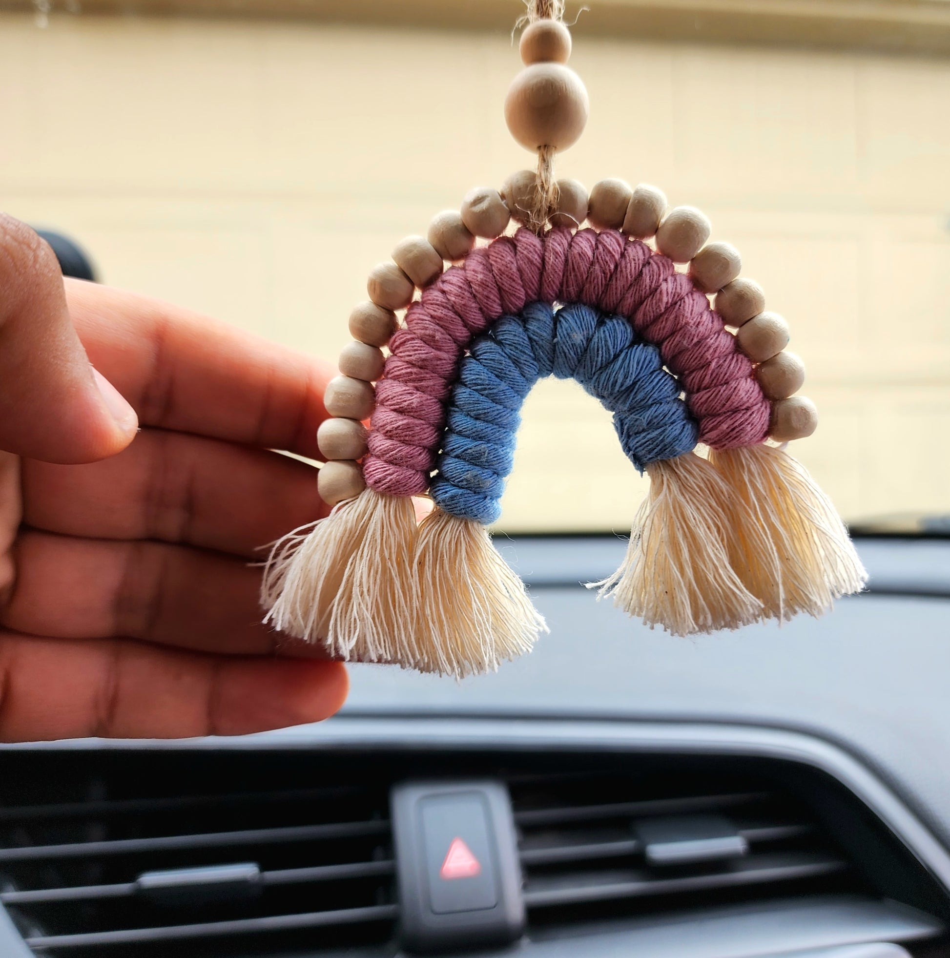- Colorful Macrame Rainbow Car Charms: Whimsical elegance meets aromatherapy.